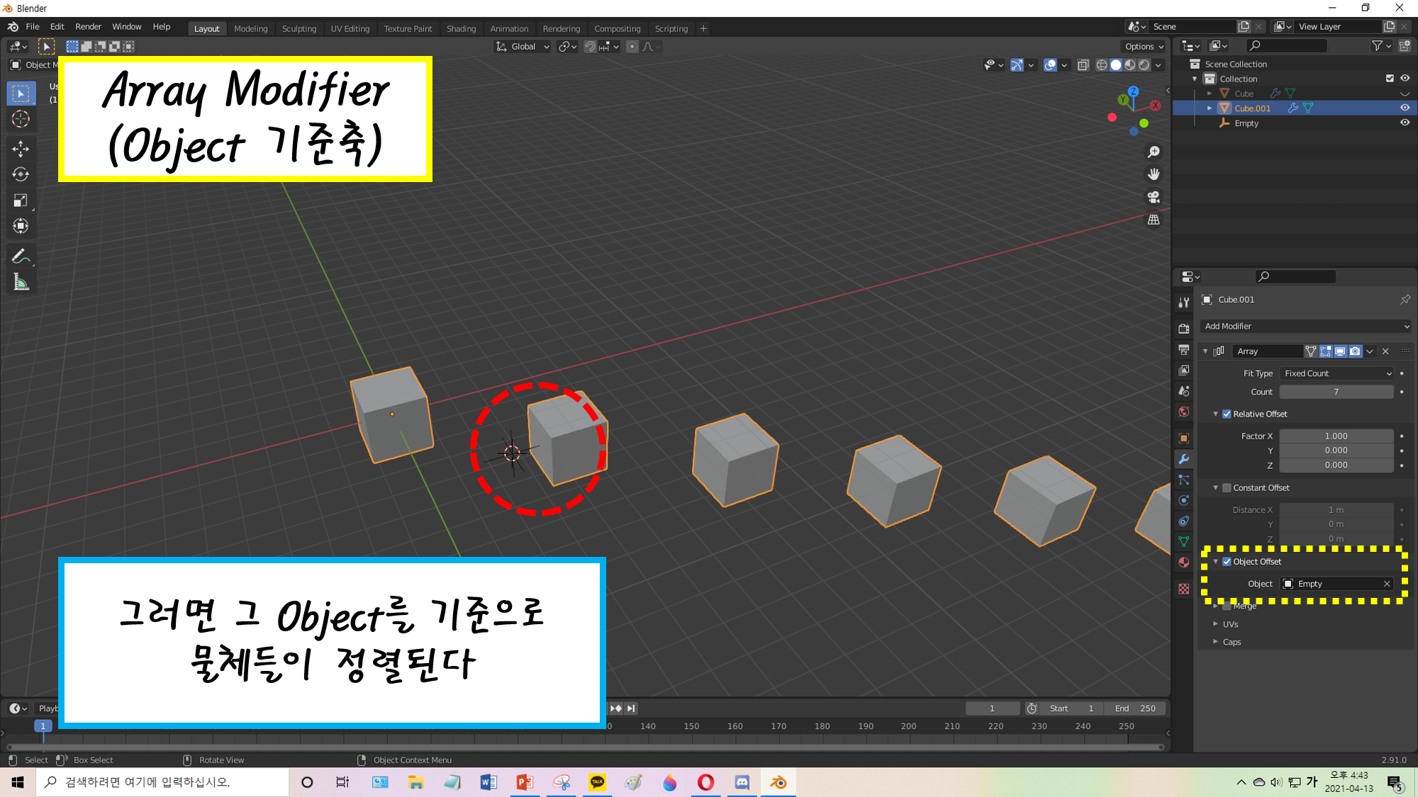 그런데 Array Modifier는 도대체 어디를 기준으로 정렬될까요?