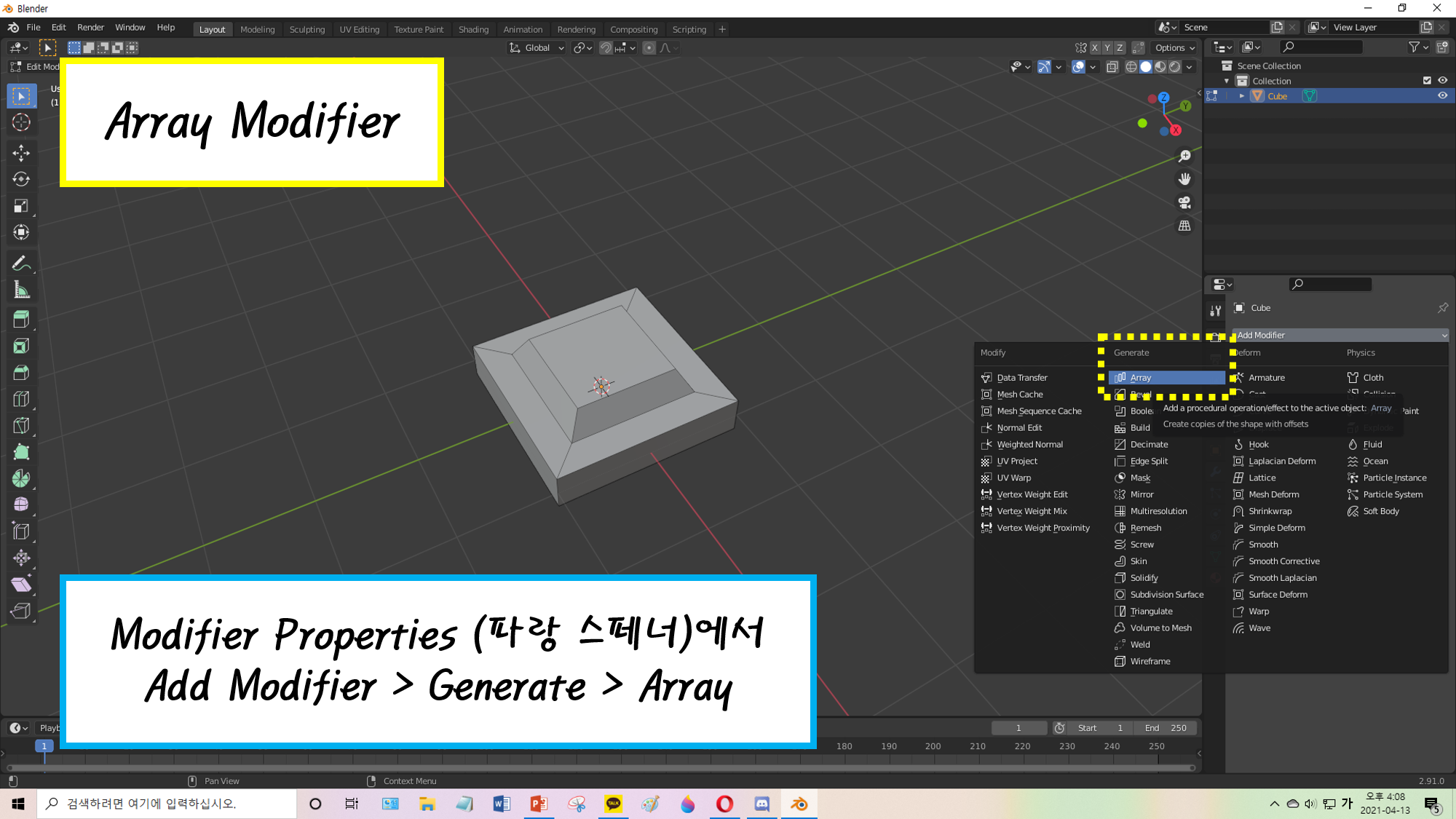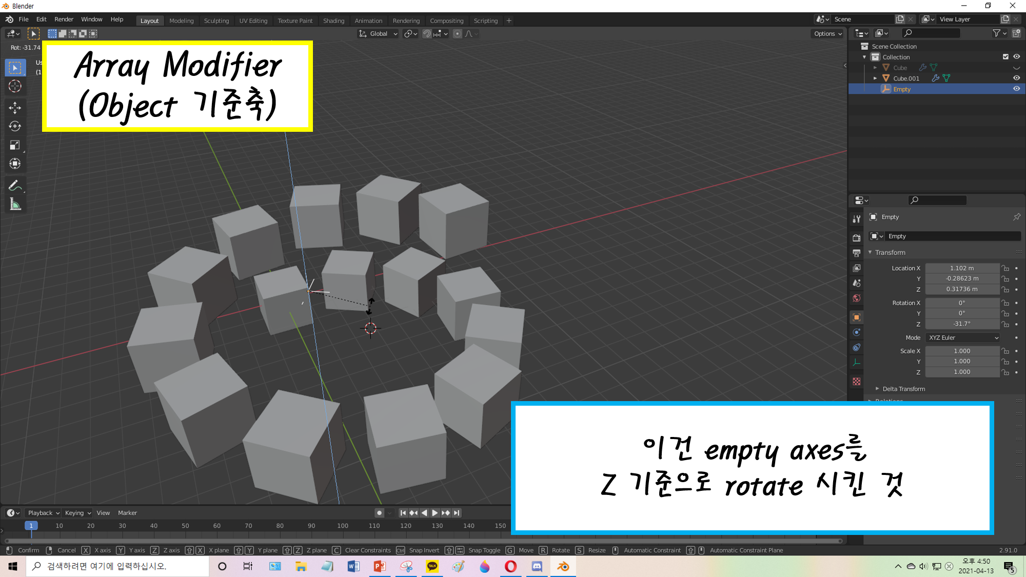 21.04.17 Blender Day 3 - Array ModifierBQLV/Blender 연습 2021. 4. 17. 14:10