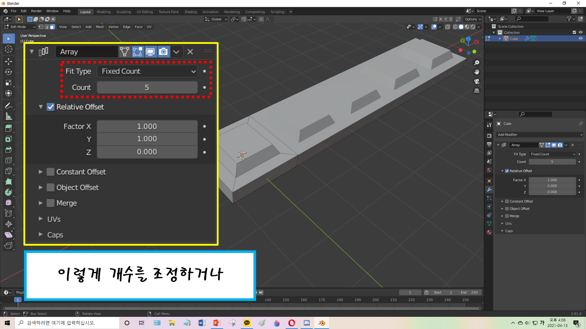 Array Modifier를 1개 적용시켜 둔 상태에서