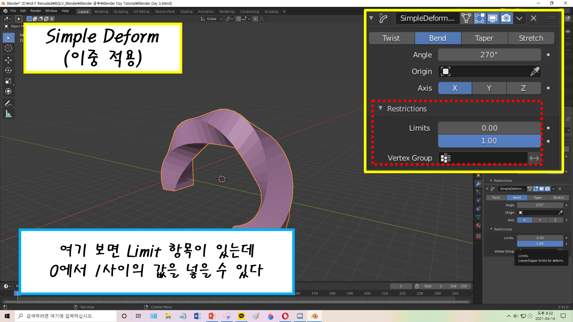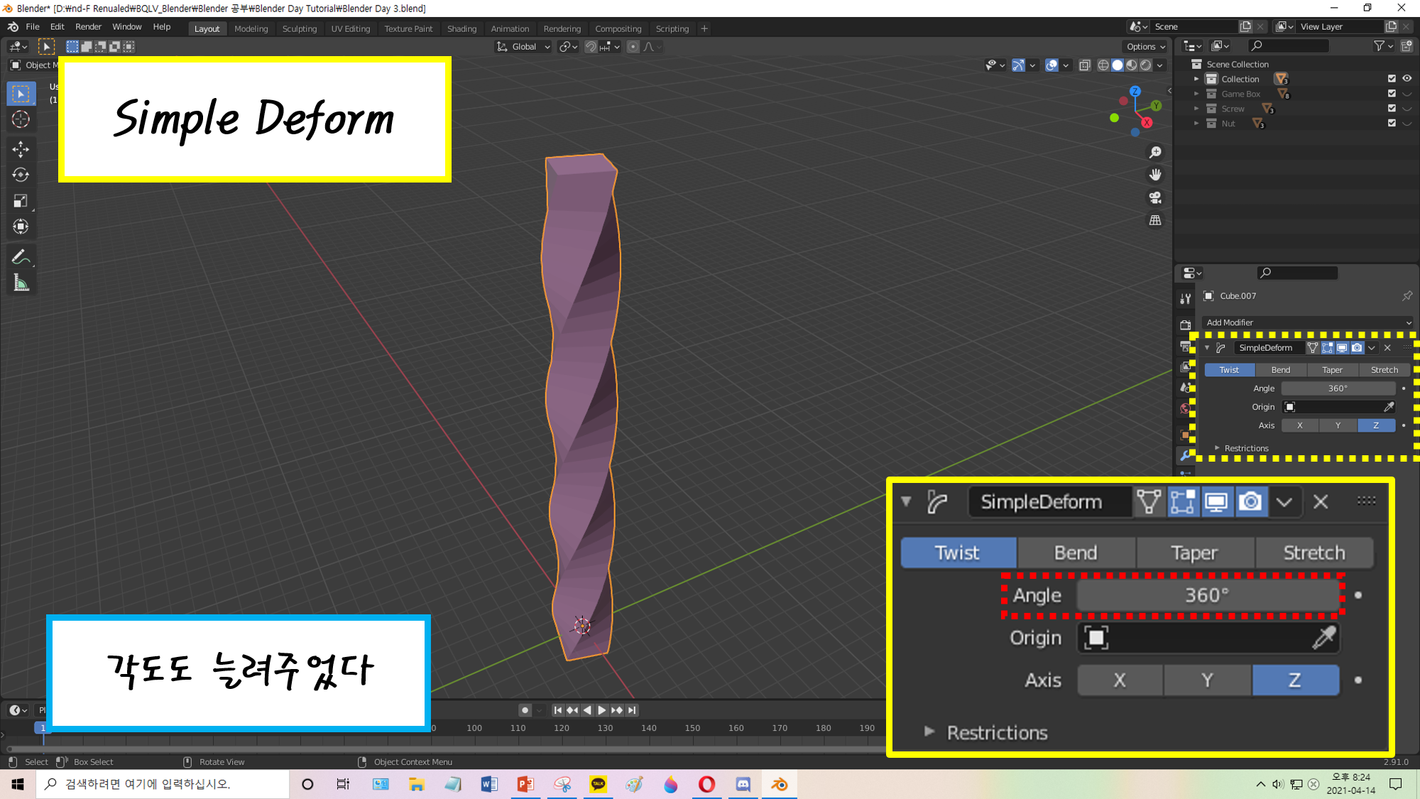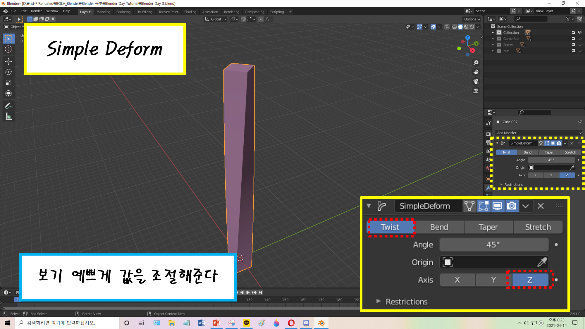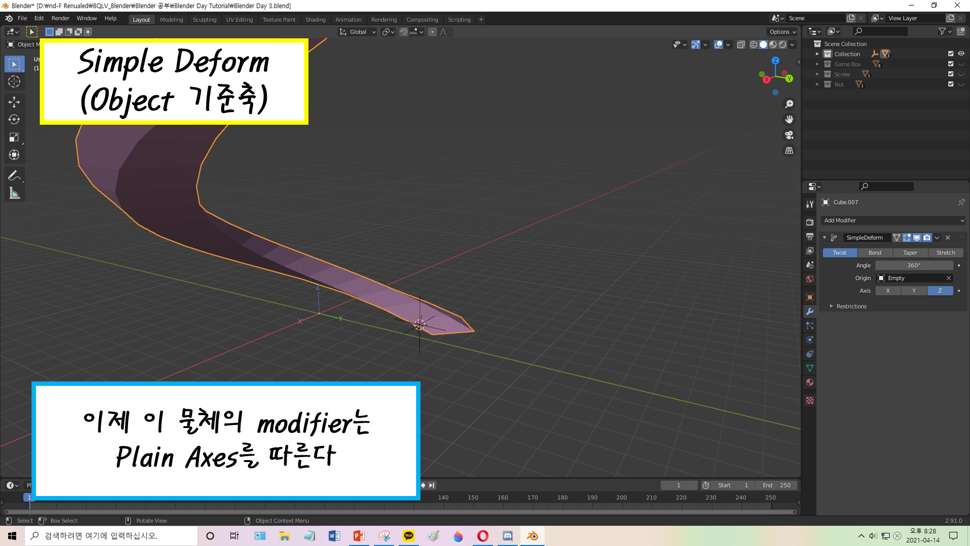 21.04.17 Blender Day 3 - Simple DeformBQLV/Blender 연습 2021. 4. 17. 15:03